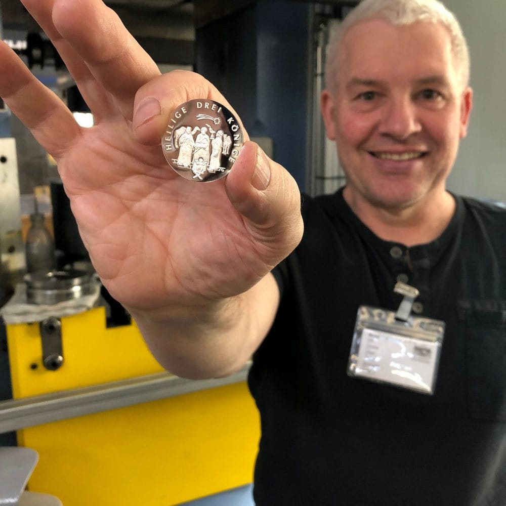 Gleichzeitig bekamen wir auch noch eine interne Führung durch das Hauptmünzamt und bekamen so einen kleinen Einblick in deren Arbeit. Wir waren überwältigt von der Größe und den Dimensionen. Dagegen wirkt unsere kleine aber feine Münzmanufaktur wie eine Miniaturversion. Natürlich ist uns bewusst, dass es sich im Hauptmünzamt um ganz andere Massen an Prägungen handelt. Vielen Dank an dieser Stelle an das Team des Bayerischen Hauptmünzamtes für die Zeit und den Austausch. Wir werden sicher in Zukunft Ihre Expertise und Ihr Angebot mit nutzen. Auf einen guten Anklang der Weihnachtsmünze 2025 „Heilige drei Könige.